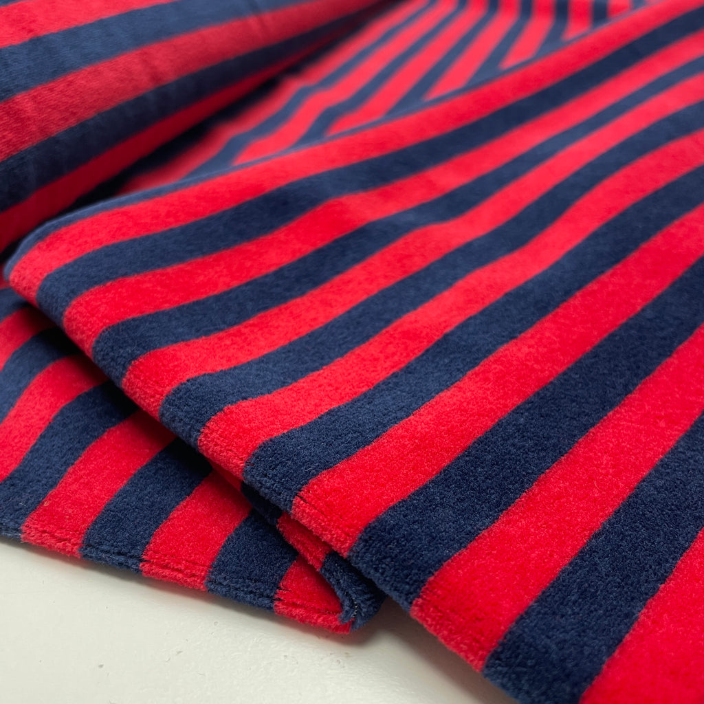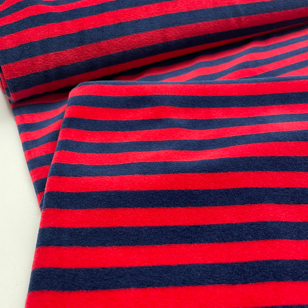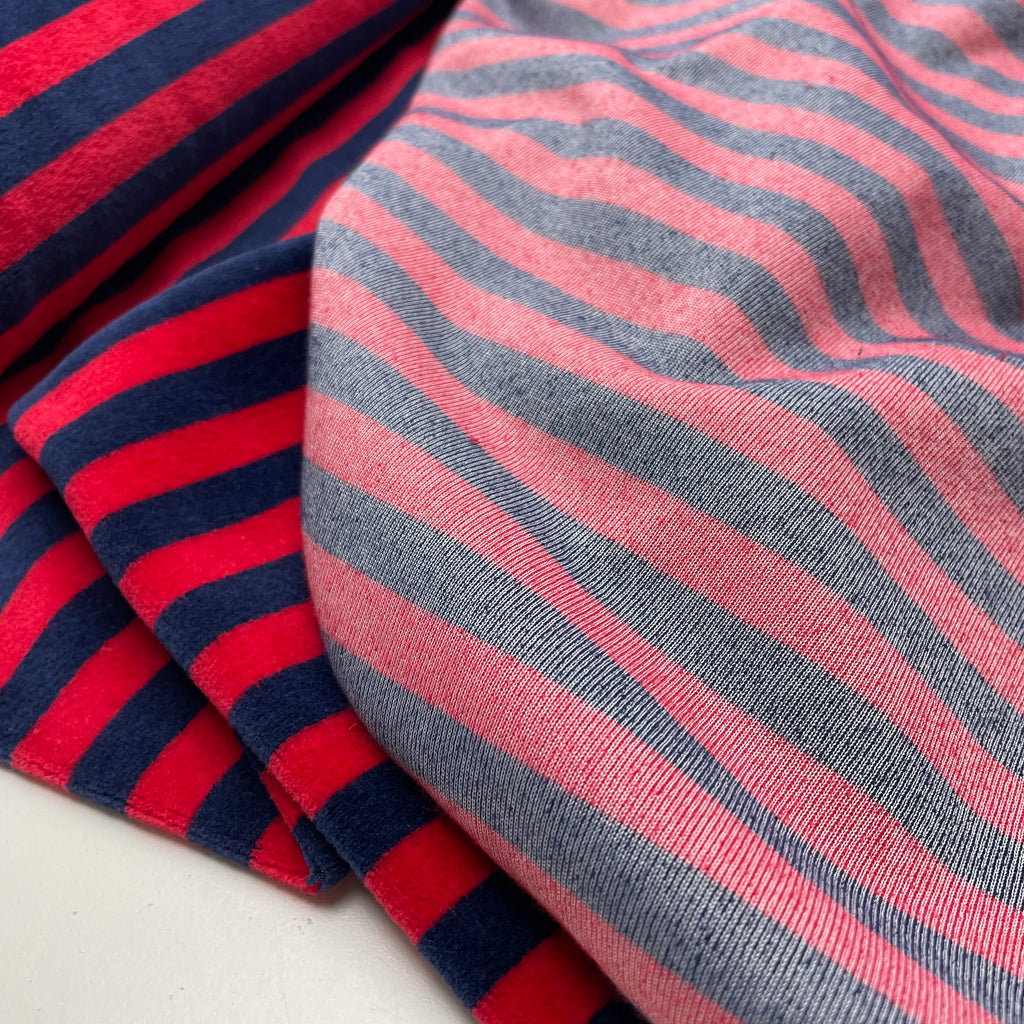 Nicki Jersey Stoff gestreift blau rot
