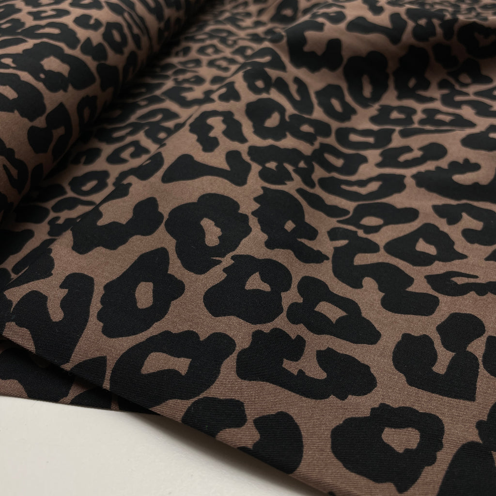 Viskose Stoff mit Stretchanteil Webware Leo Muster braun